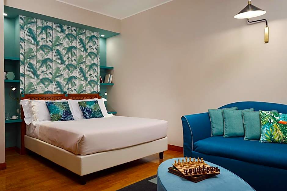 Deluxe Apartment is 484 square feet and includes a queen-size bed 150-154 width plus living room and extra beds on demand.